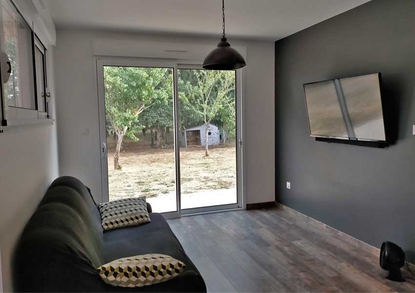 Une cloison dans l’extension sépare les deux espaces afin d’isoler le bureau des autres pièces et ainsi télétravailler dans de bonnes conditions.